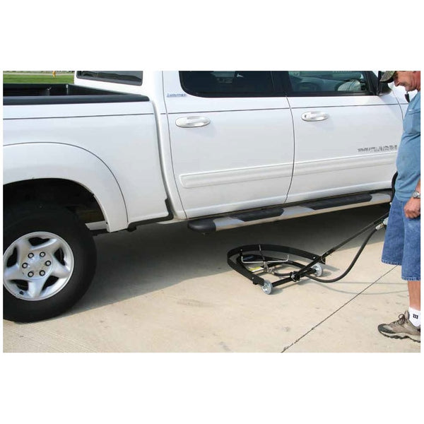 An ideal way to clean under a vehicle. No more crawling under vehicles. Simply connect to your hot or cold pressure washer. Its easy to move and its removes road grime and other contaminants from under vehicles. It has a stainless steel rotating assembly built to withstand 4000PSI and 250°F.