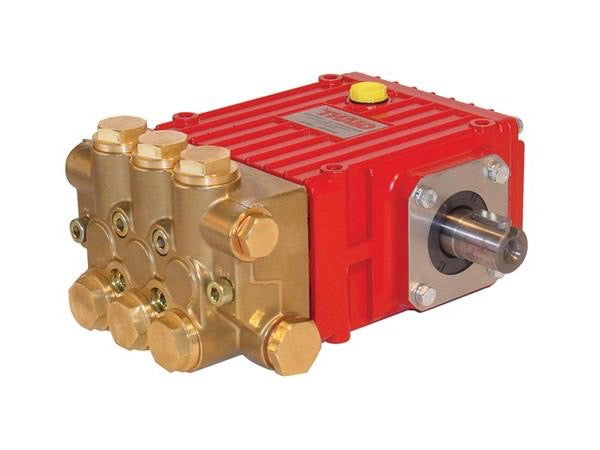 Aluminum crankcase with sight glass and vented dipstick; forged, through-hardened, ground and polished crankshaft; bronze connecting rods; hardened stainless steel plunger bases; solid ceramic plungers; nitrile seals (with fabric reinforcing); stainless steel valves and forged brass manifold.